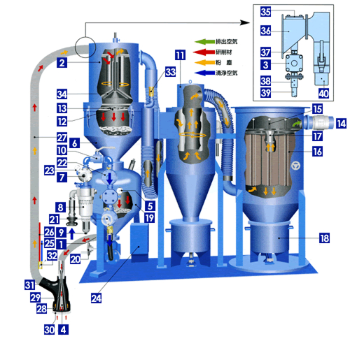 • 研削材を自動回収し、繰り返し使用するので経済的。