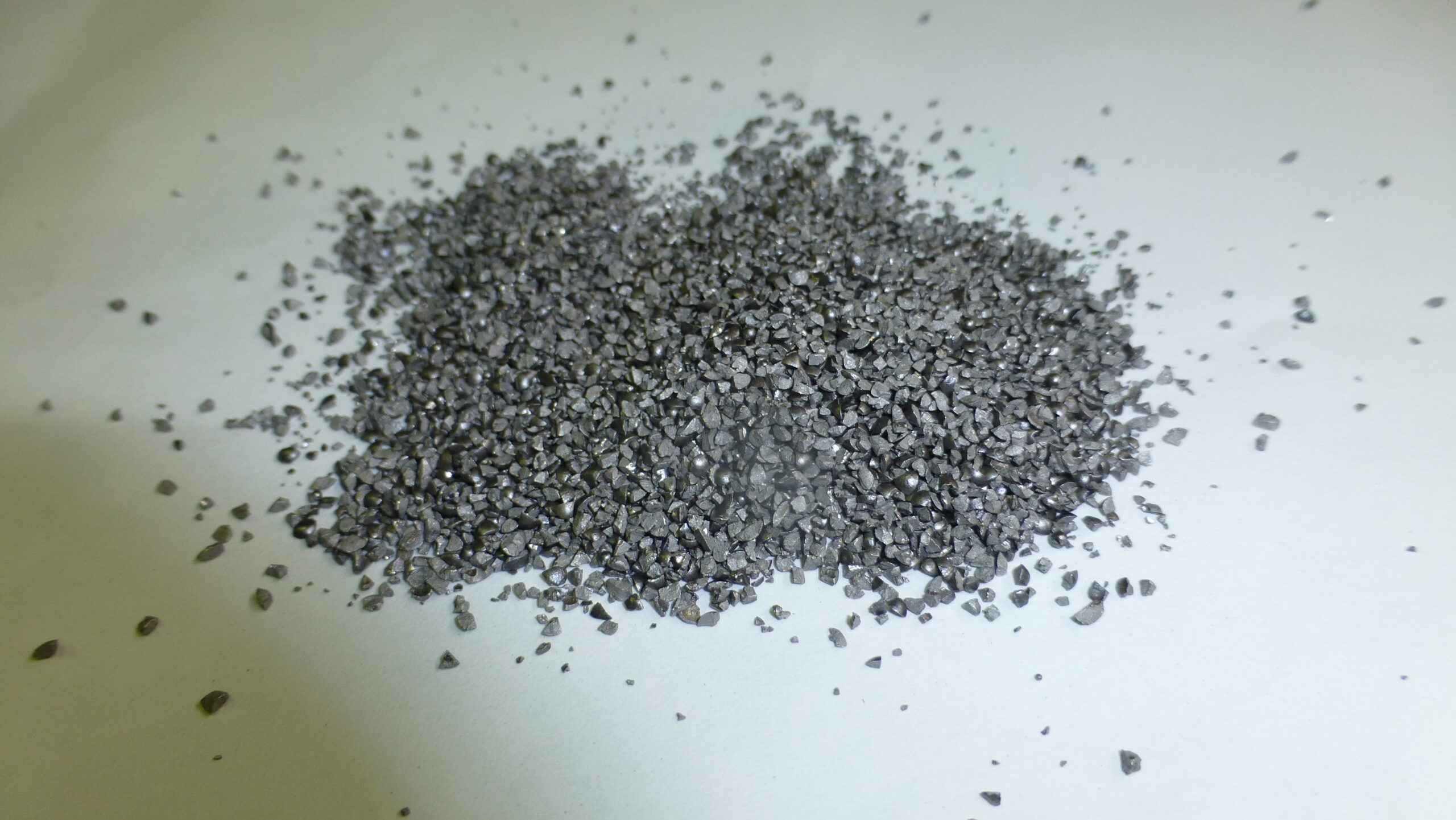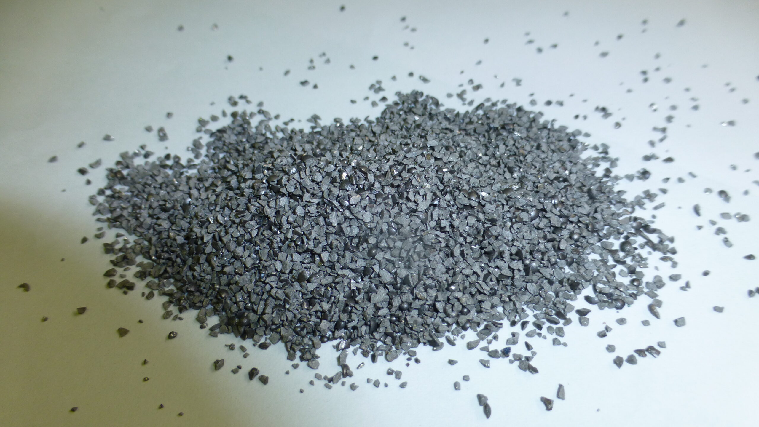 グリッドとは電気炉・溶鉱炉などで溶解鋳造されたりょう角部を有する金属粒、またはそれに熱処理を加えたもののことを言います。